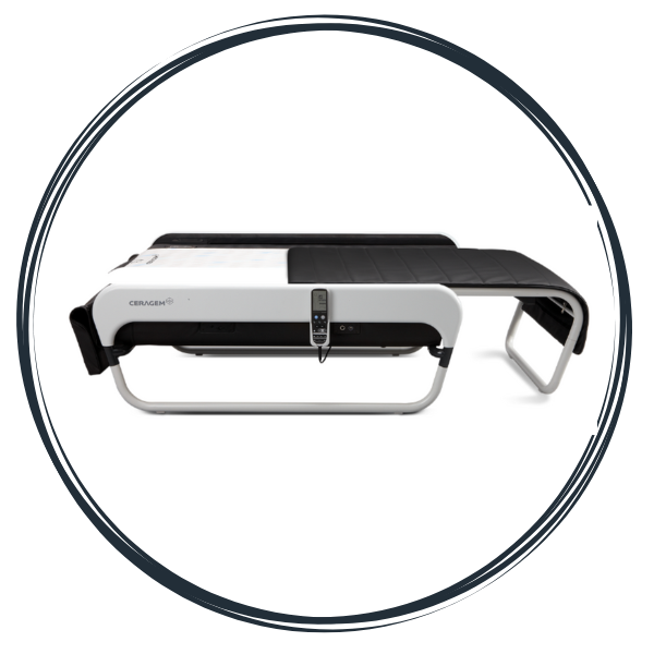 A massage on the Ceragem bed is like no other massage around. This bed is an FDA approved physical therapy device that acts like a chiropractic massage combined with infrared heat and acupressure stimulation.